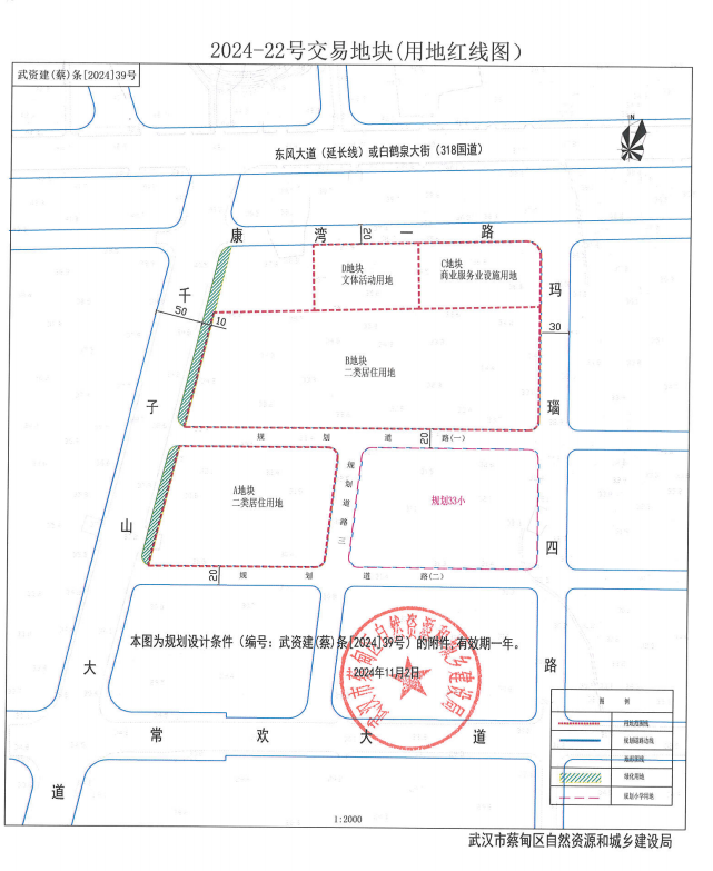 2、P(2024)109號(hào)地塊,位于蔡甸區(qū)蔡甸街生態(tài)城大道與賞琴南路交匯處以東 (蔡甸街新農(nóng)村),規(guī)劃凈用地面積為11867平方米,規(guī)劃用地性質(zhì)為二類居住用地,國(guó)有建設(shè)用地使用權(quán)出讓年限為住宅用地70年。
