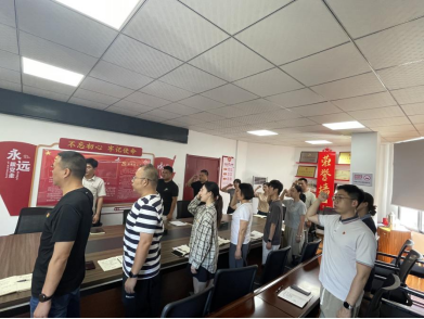 “我志愿加入中國(guó)共產(chǎn)黨……” 在支部書(shū)記的帶領(lǐng)下,全體黨員面向黨旗莊嚴(yán)宣誓。鏗鏘有力的誓詞回蕩在會(huì)議室,既是對(duì)入黨初心的回望,更是對(duì)使命擔(dān)當(dāng)?shù)闹厣?,讓每一位黨員再次接受心靈的洗禮。